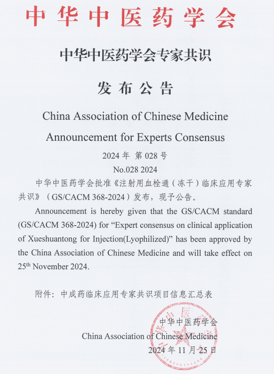 現已發布的《注射用血栓通(凍干)臨床應用專家共識》將納入證據庫,供中醫臨床診療指南編制時參考。