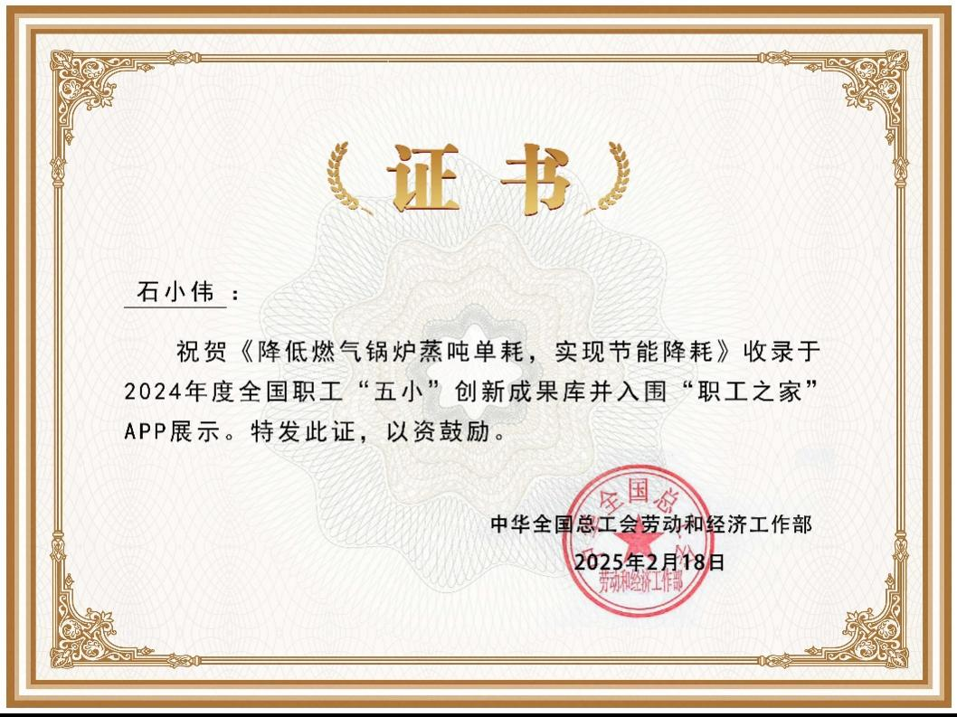 近日,全國總工會公布2024年度全國職工“五小”創新成果庫錄入名單。梧州制藥動力基建車間憑借一招“省氣絕活”—— “降低燃氣鍋爐蒸噸單耗,實現節能降耗”,從全國3.4萬個參賽項目中脫穎而出,成功入選全國職工“五小”創新成果庫。這不僅是梧州制藥的“高光時刻”,更在全國總工會的“職工之家”APP上展示亮相,妥妥地秀了一把梧藥工人的創新實力。